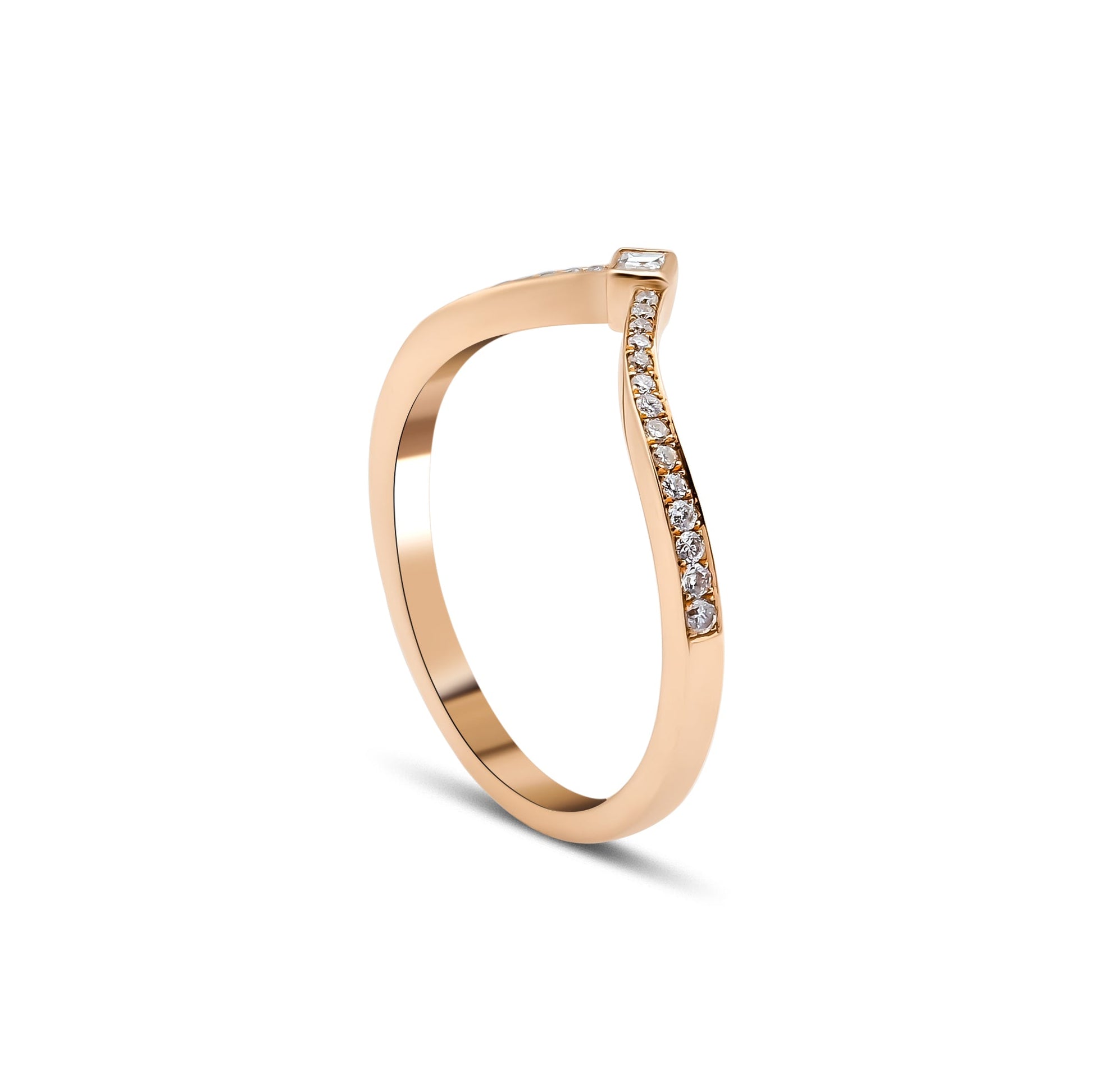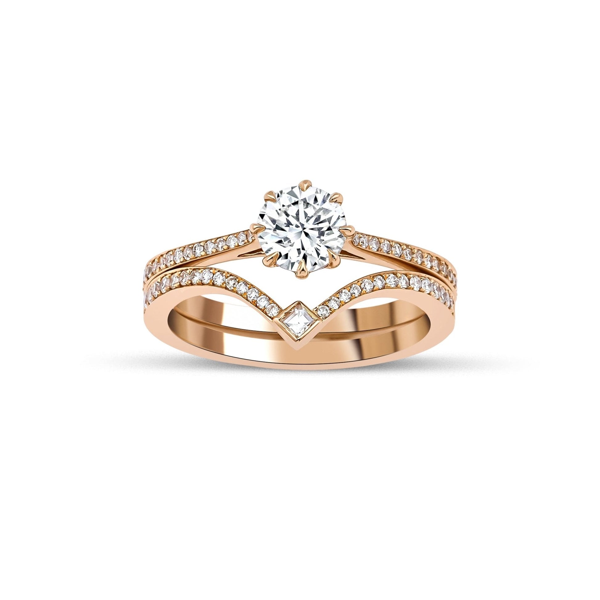 0.12 Karat Yuvarlak & 0.04 Karat Prenses Kesim Tasarım Yüzük modeli, yaklaşık 1.86 gr ağırlığında 14 Ayar Rose Altın kullanılarak özel olarak tasarlanmıştır.