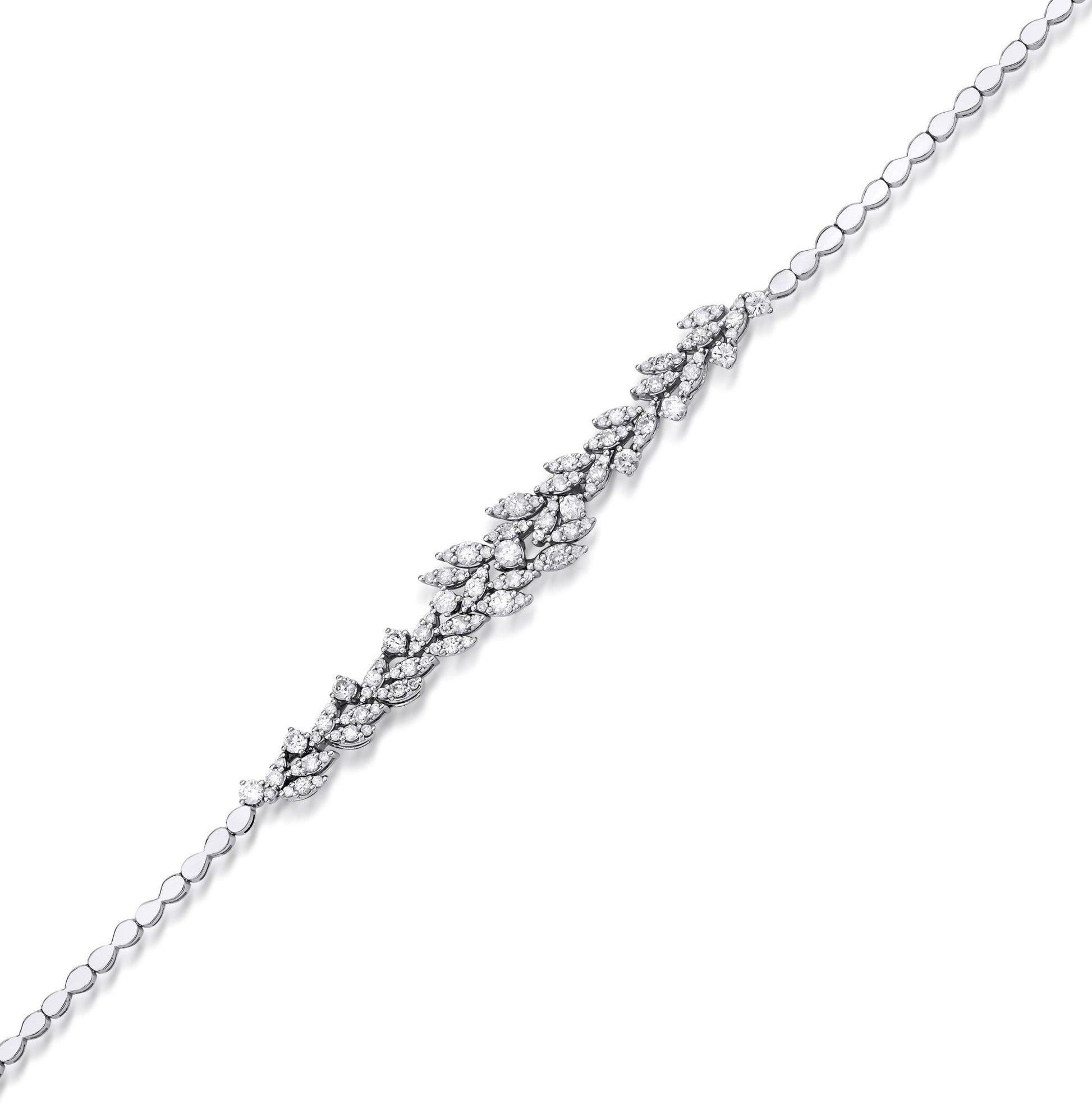 1.20 Karat Pırlanta Tasarım Bileklik modeli, yaklaşık 11.12 gr ağırlığında 14 Ayar Beyaz Altın kullanılarak özel olarak tasarlanmıştır.