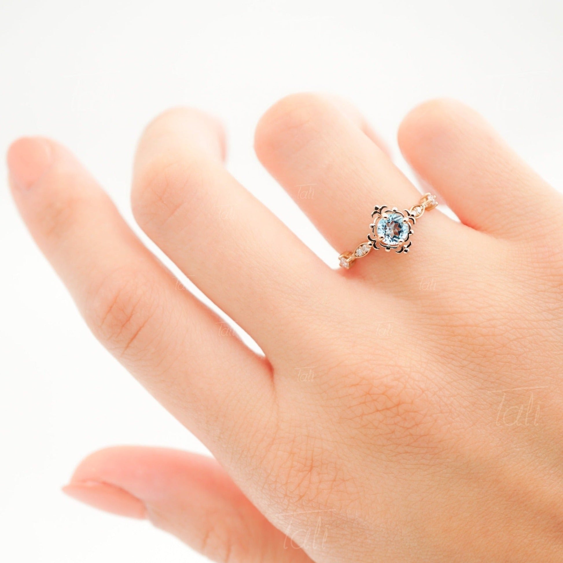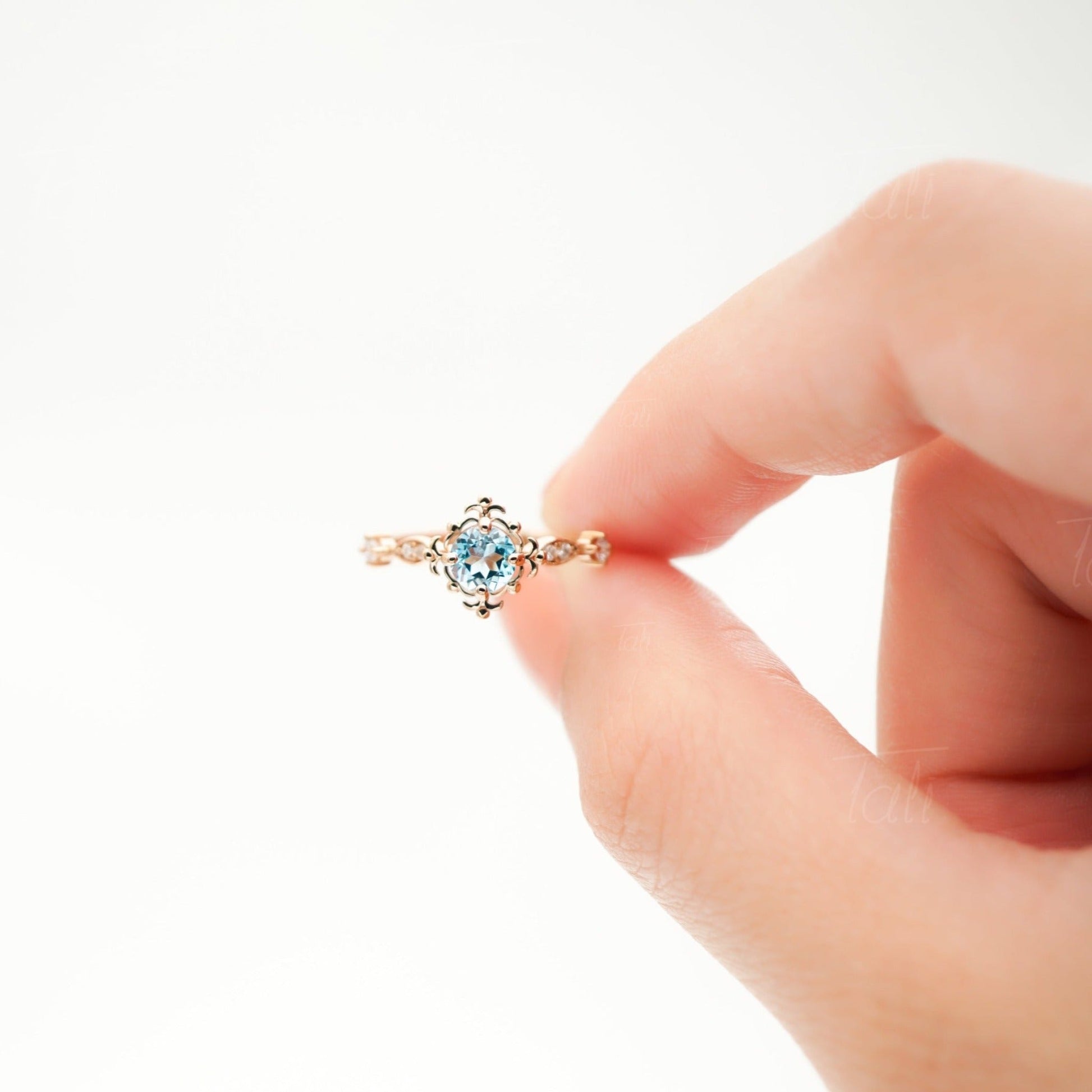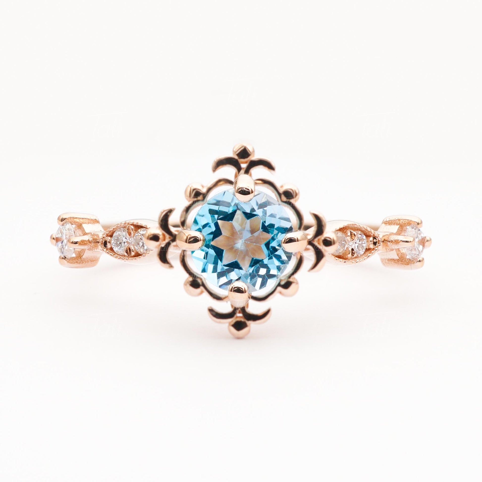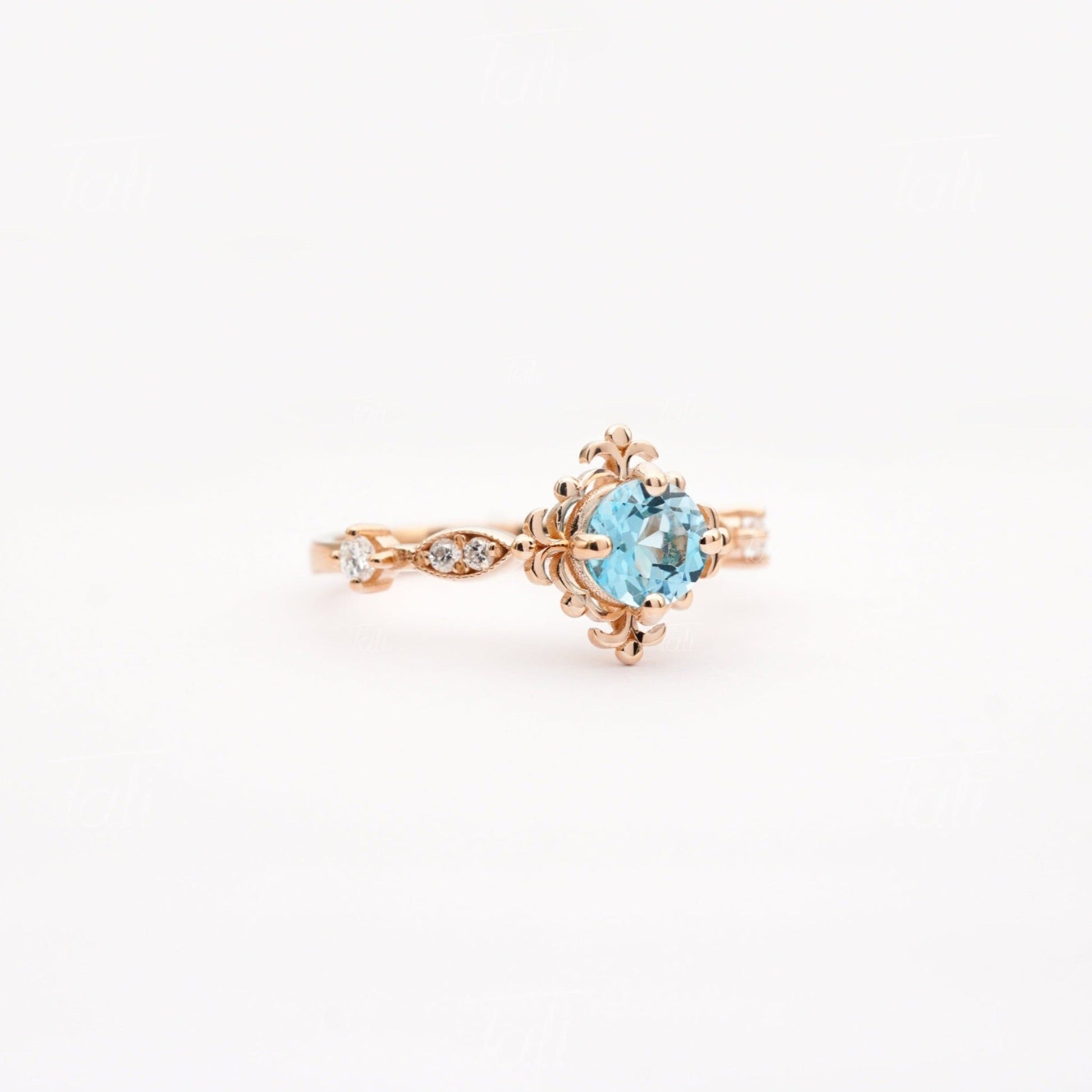 Aura Vintage Swiss Blue Topaz Pırlanta Altın Yüzük