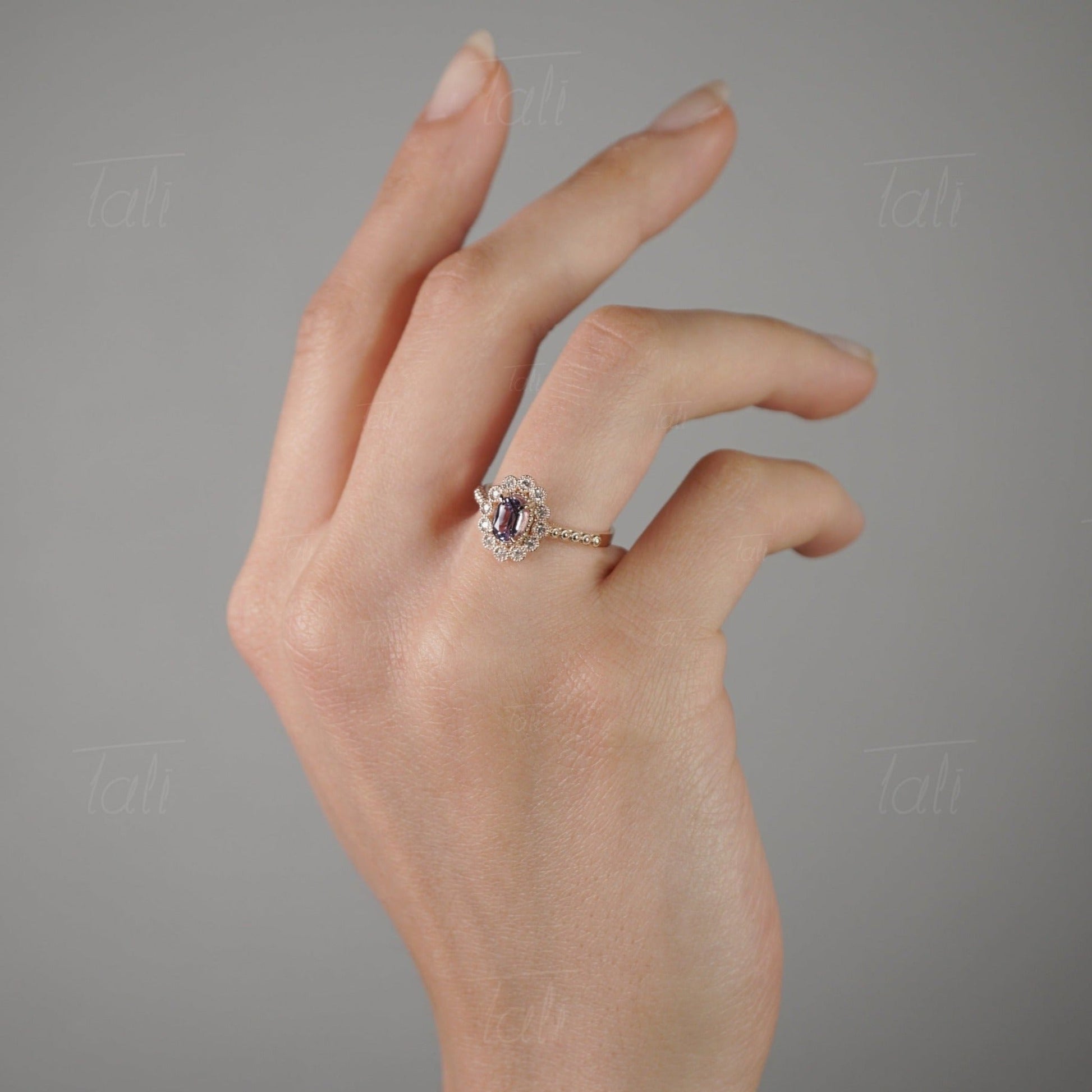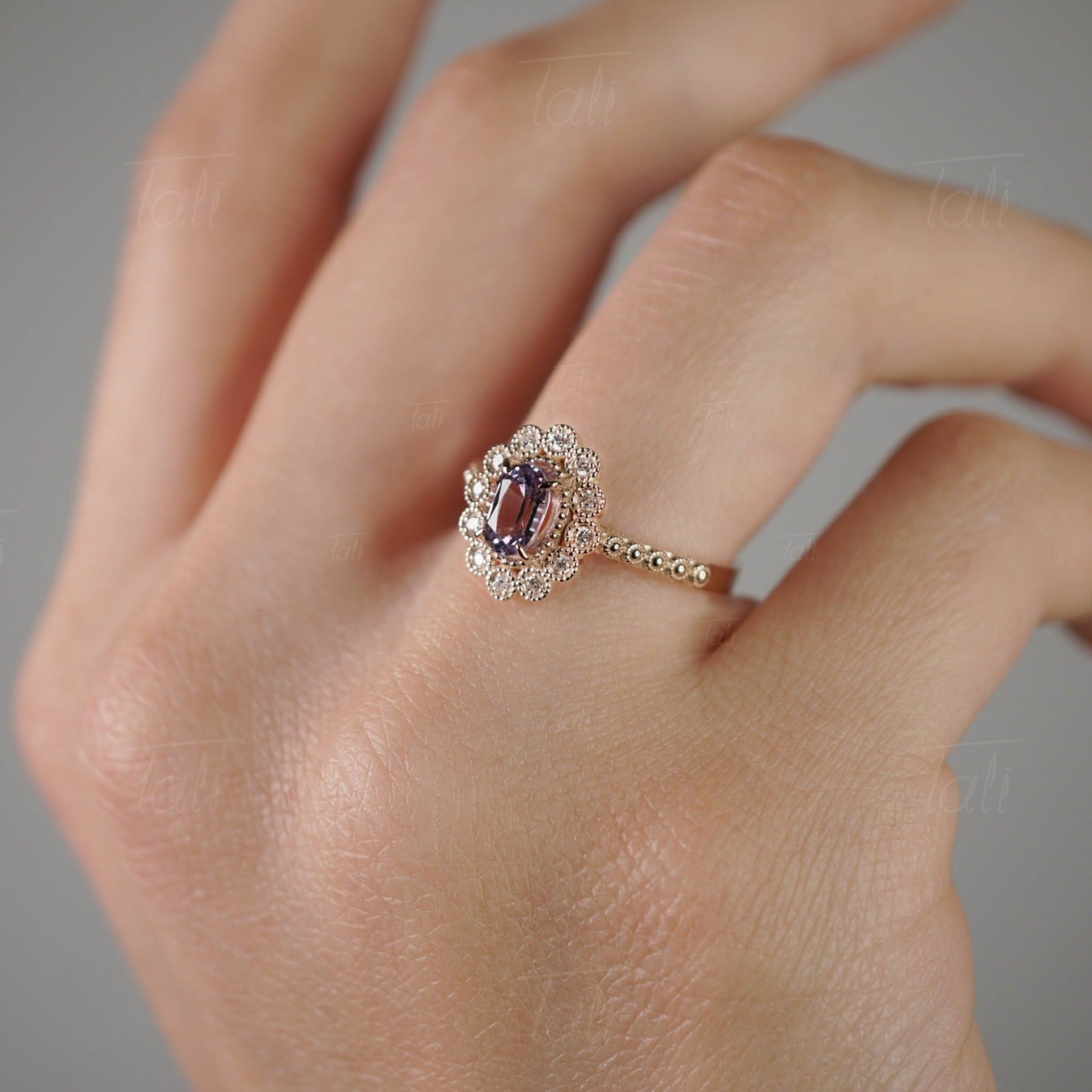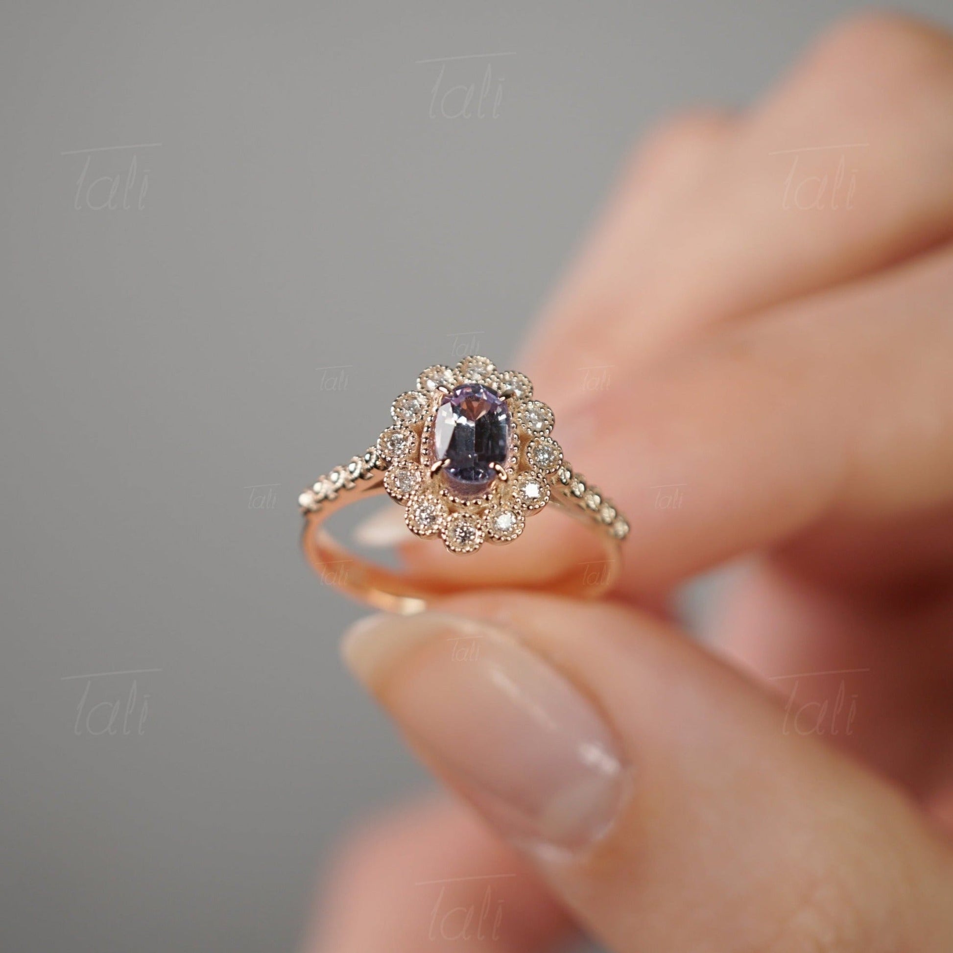 Halo Vintage Aleksandrit Pırlanta Altın Yüzük