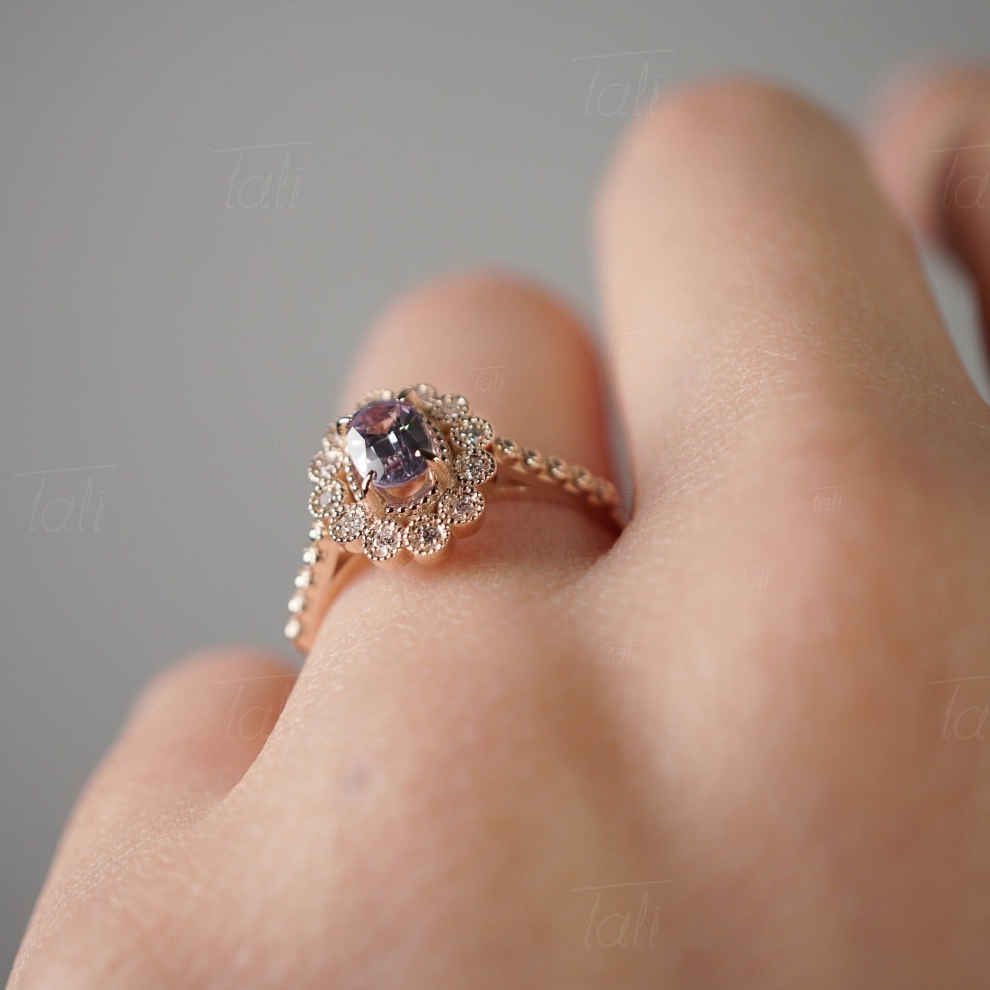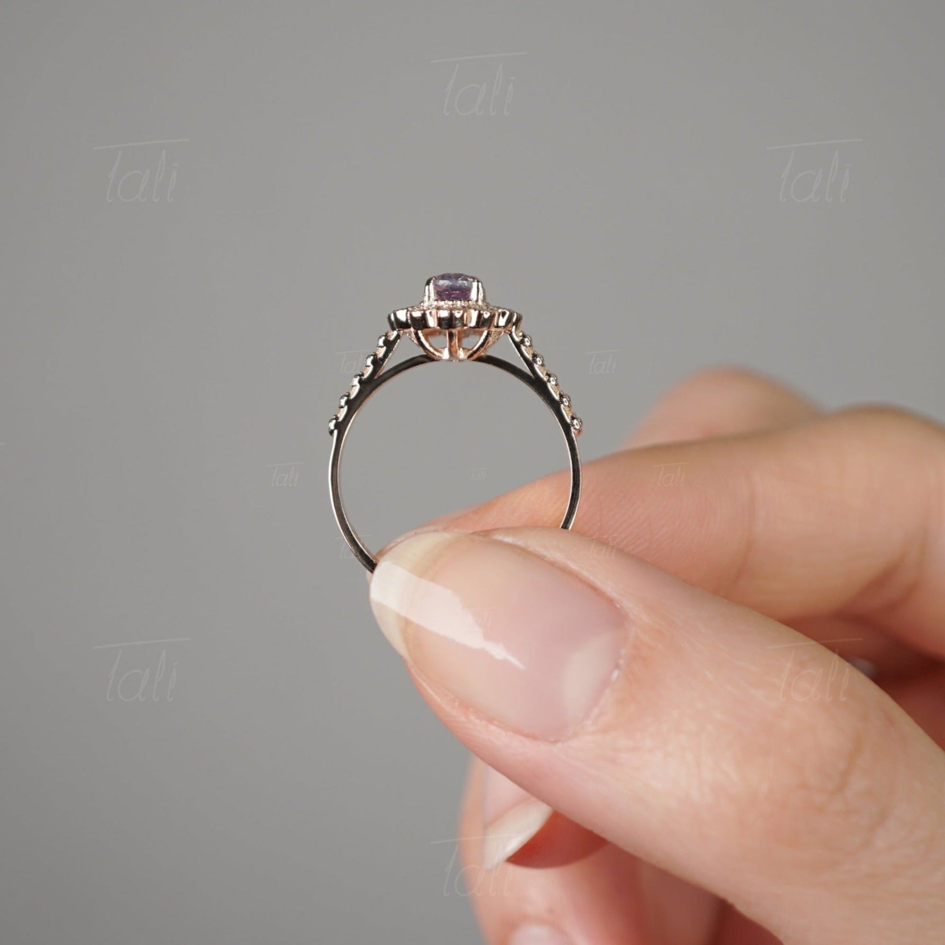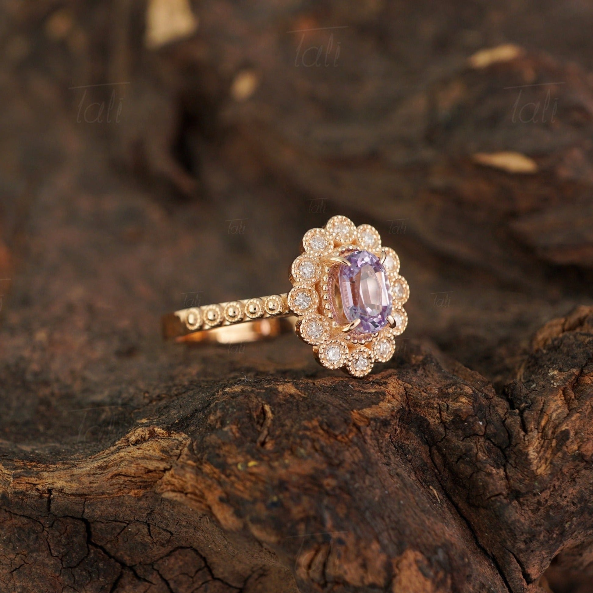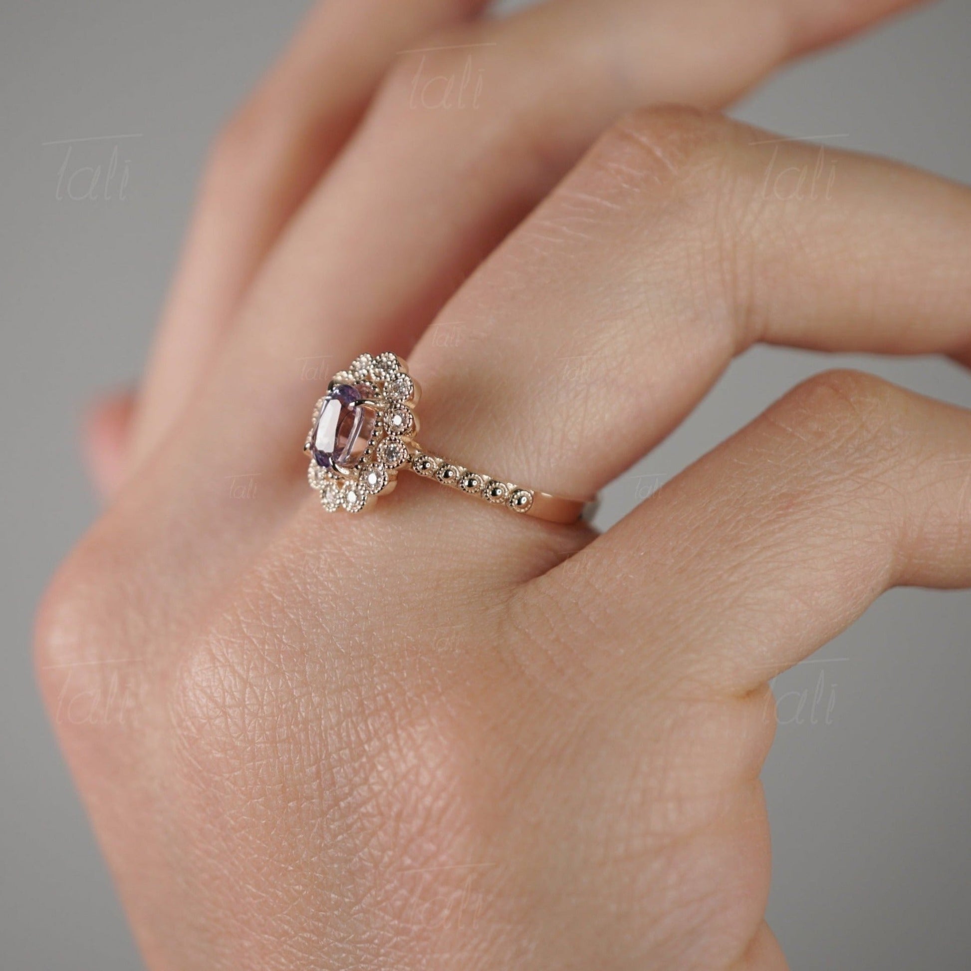 Halo Vintage Aleksandrit Pırlanta Altın Yüzük
