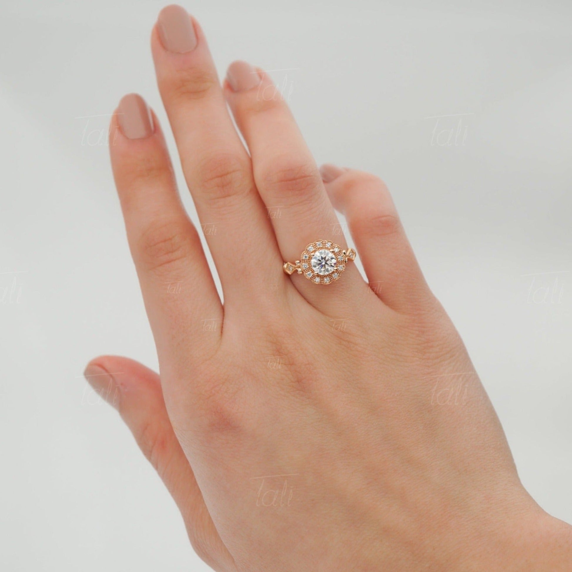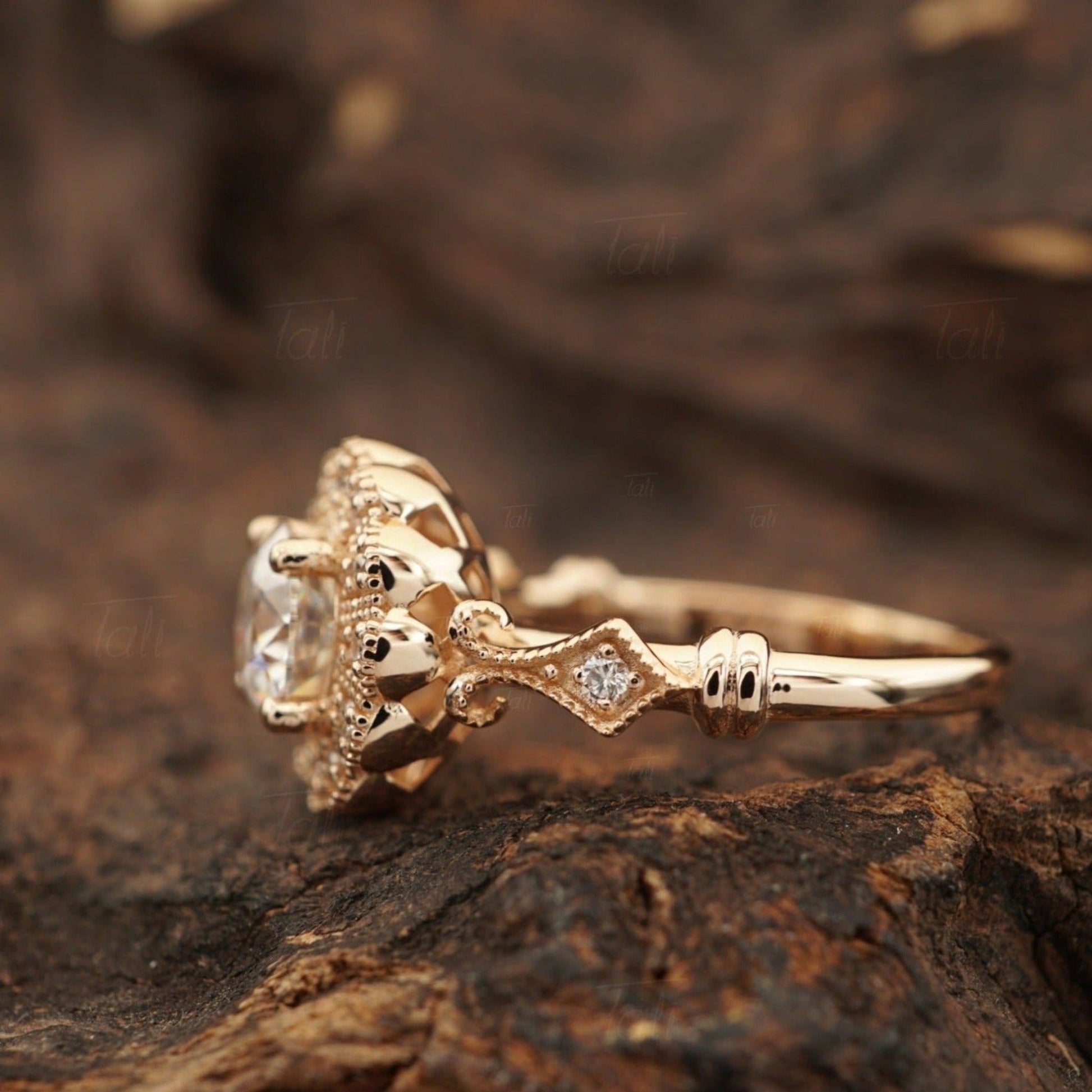 Helios Vintage Mozanit Pırlanta Altın Yüzük