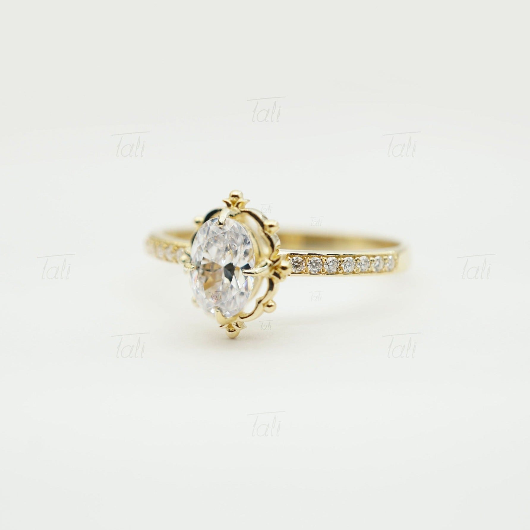 Hera Vintage Beyaz Topaz Pırlanta Altın Yüzük