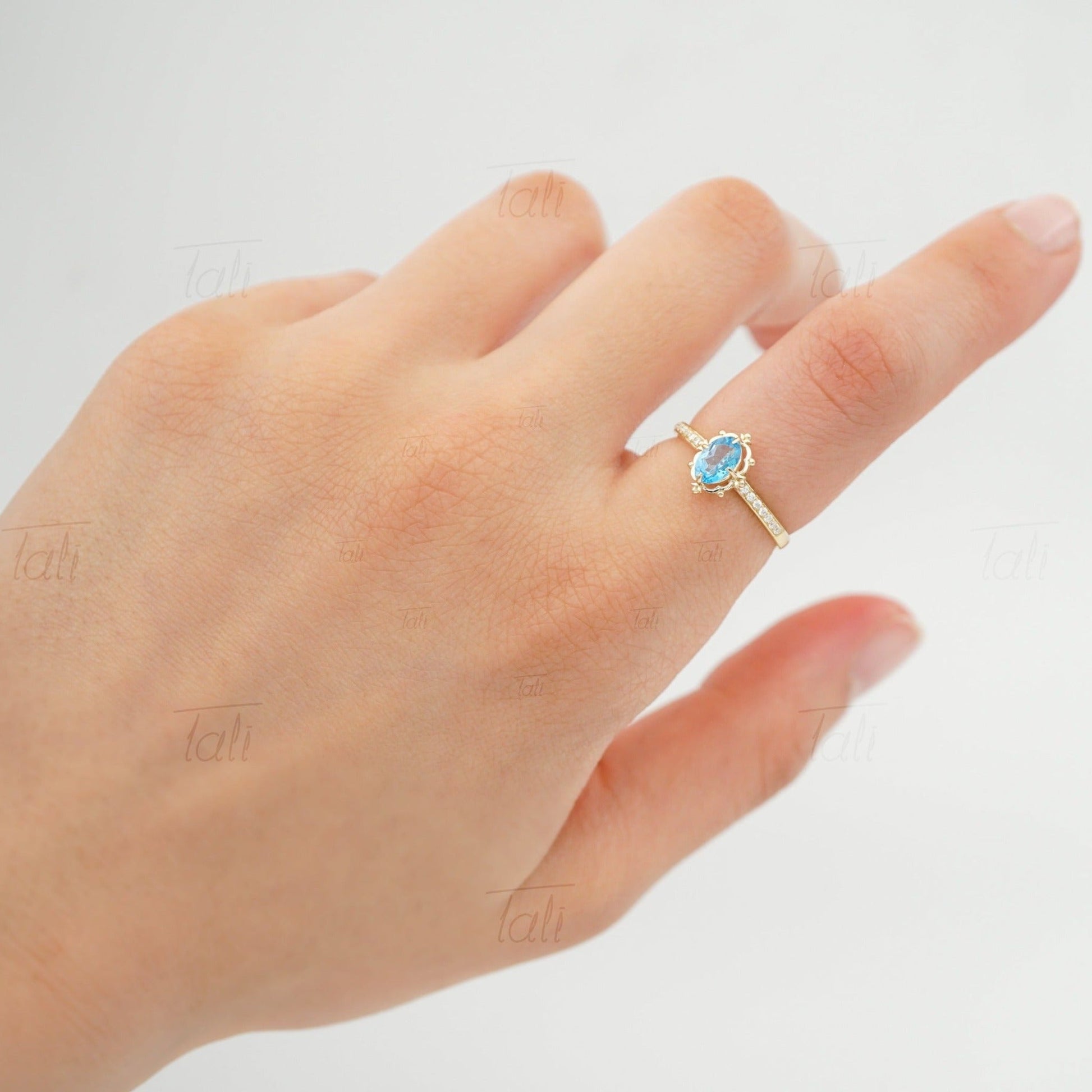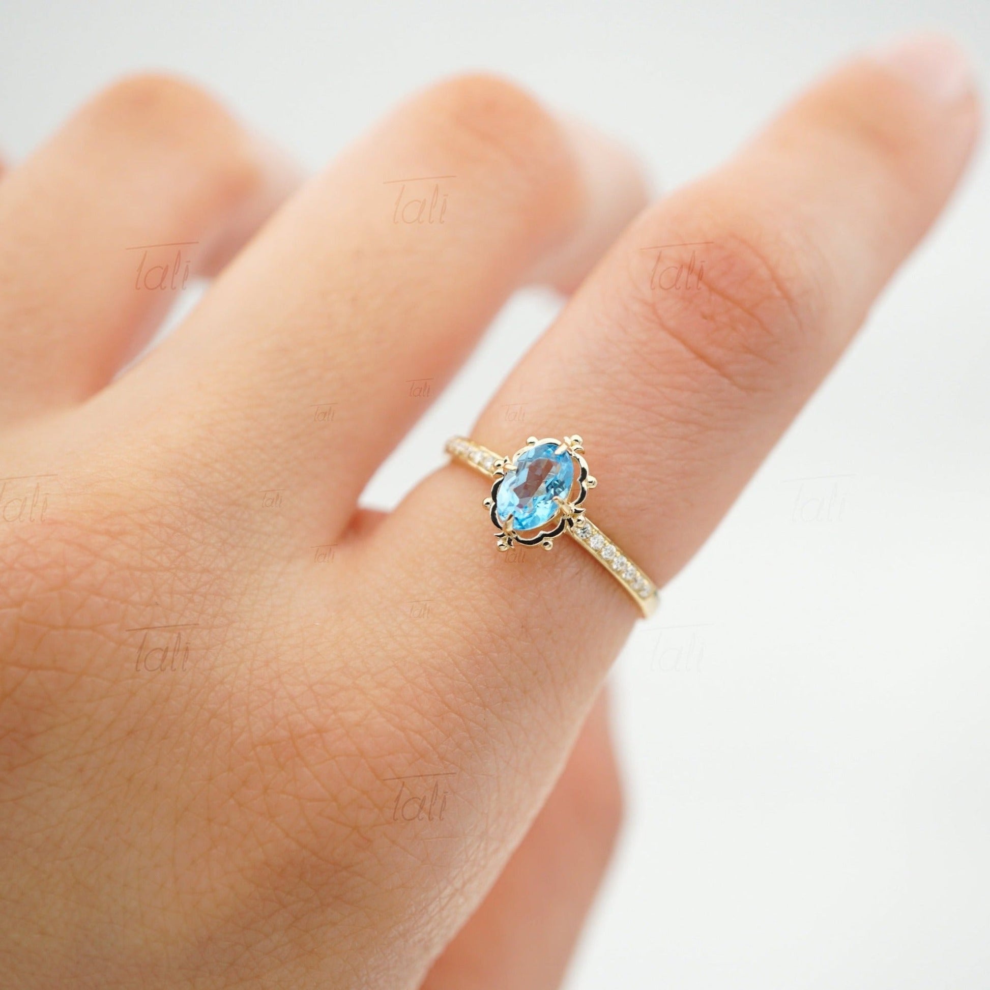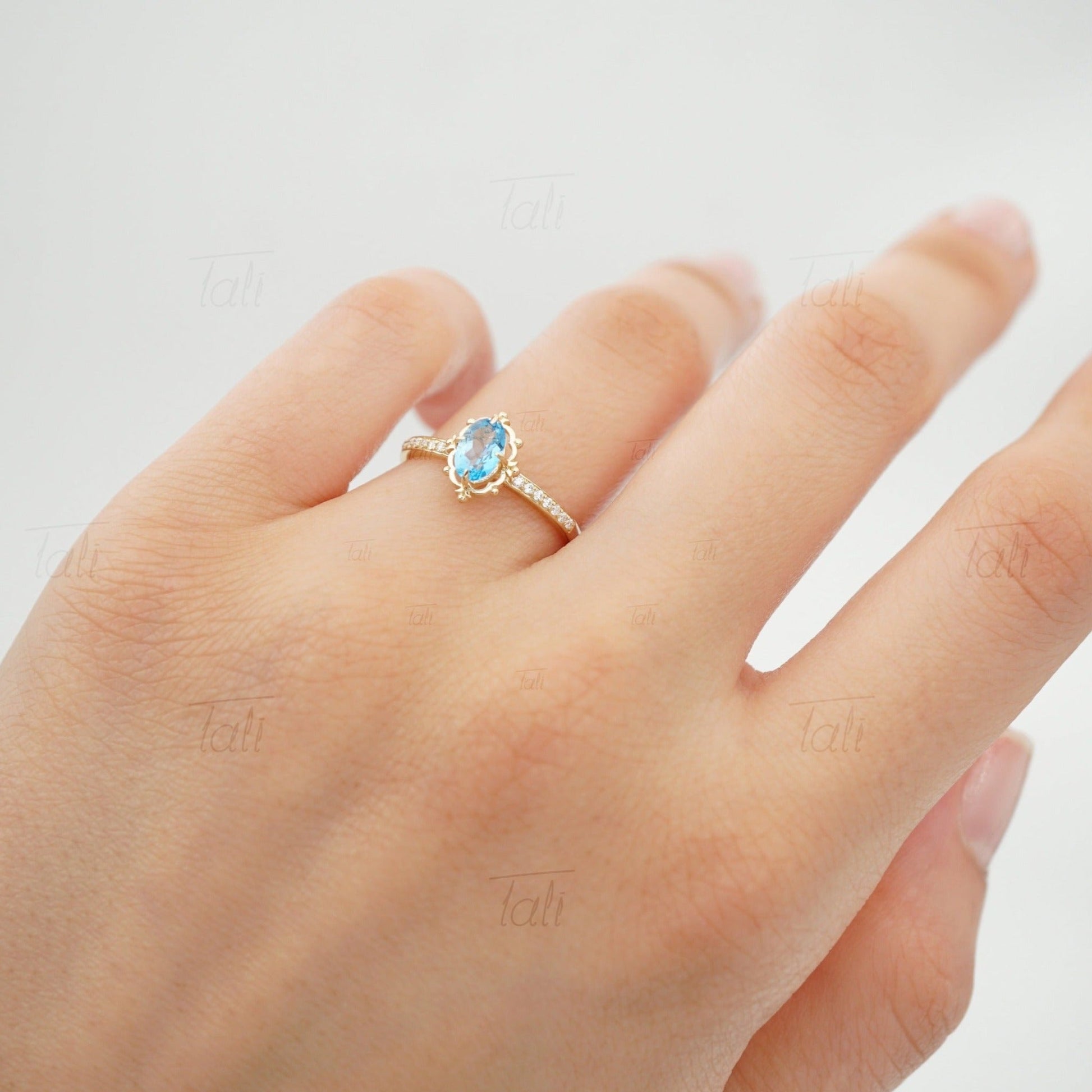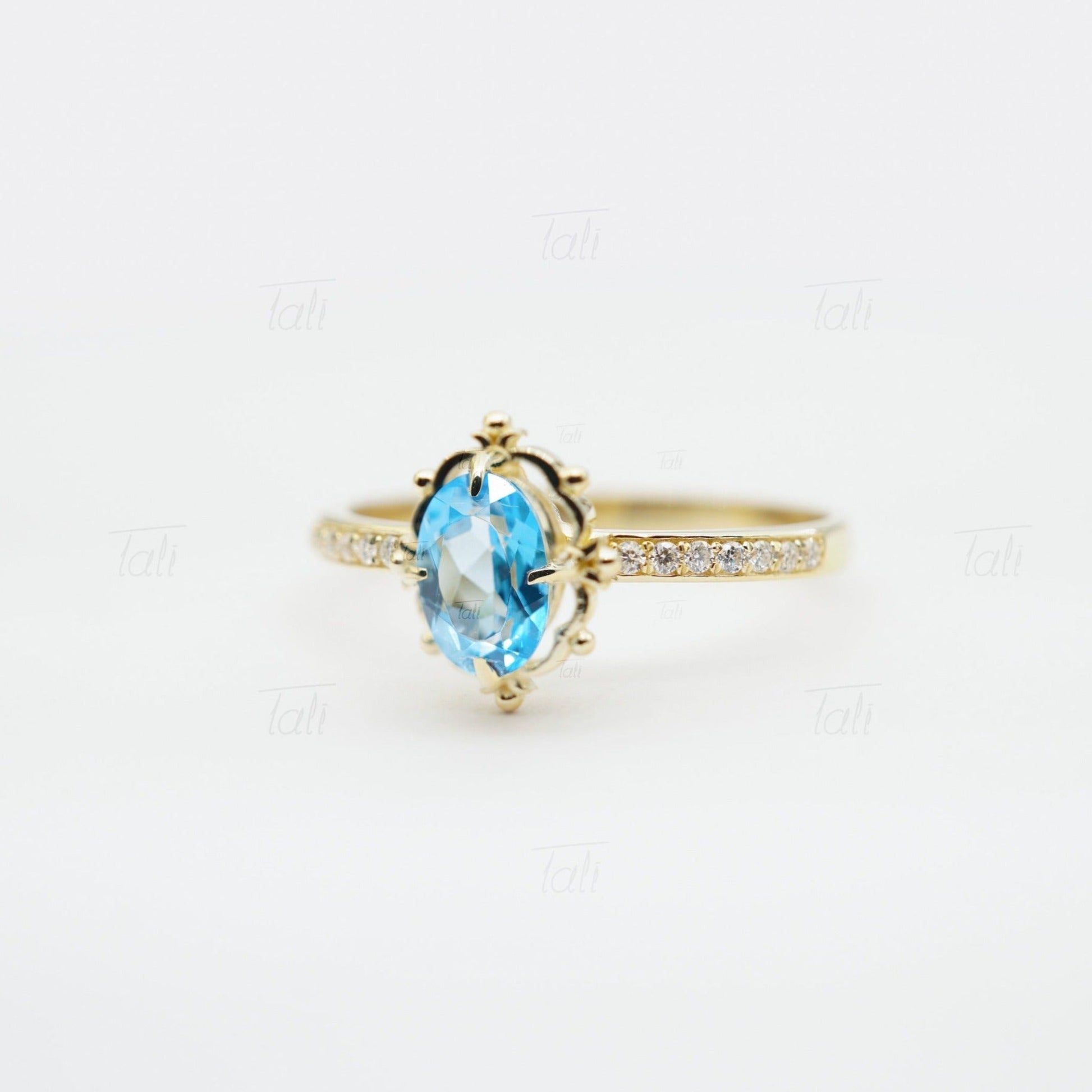 Hera Vintage Swiss Blue Topaz Pırlanta Altın Yüzük