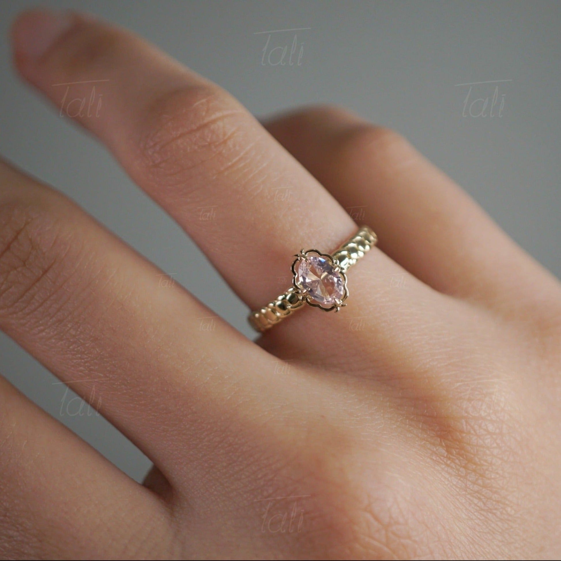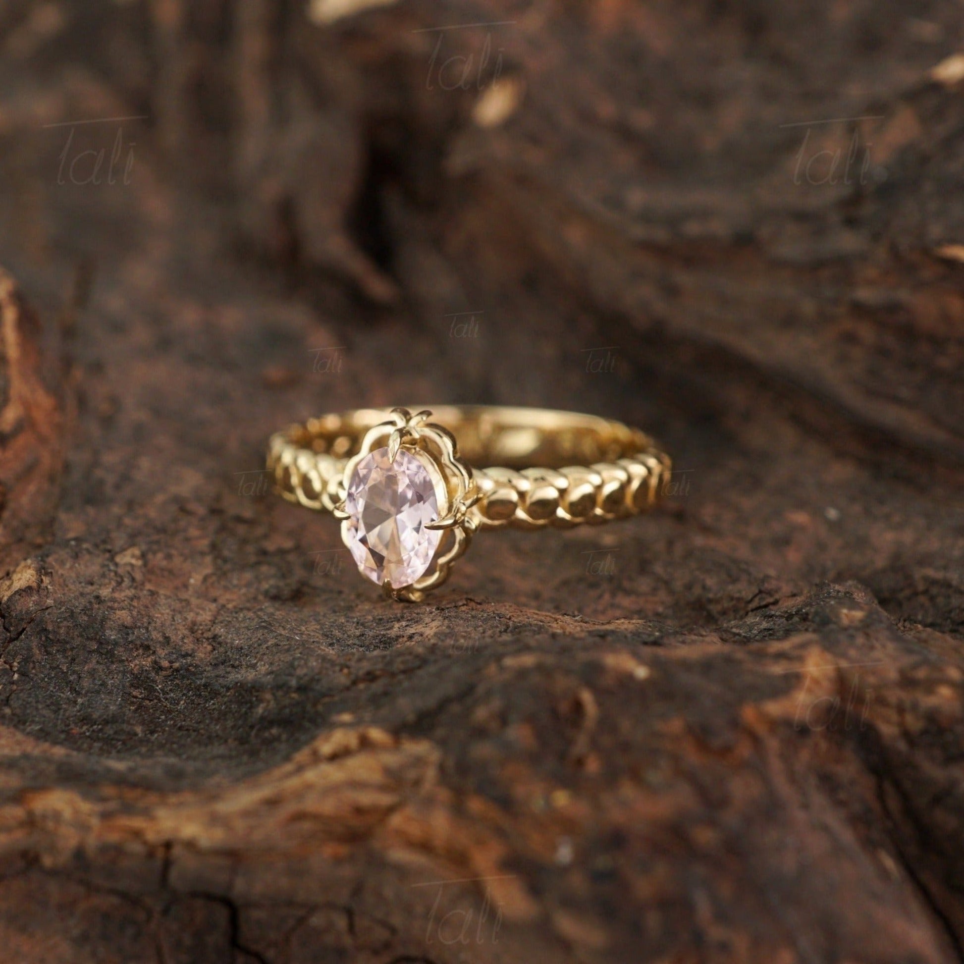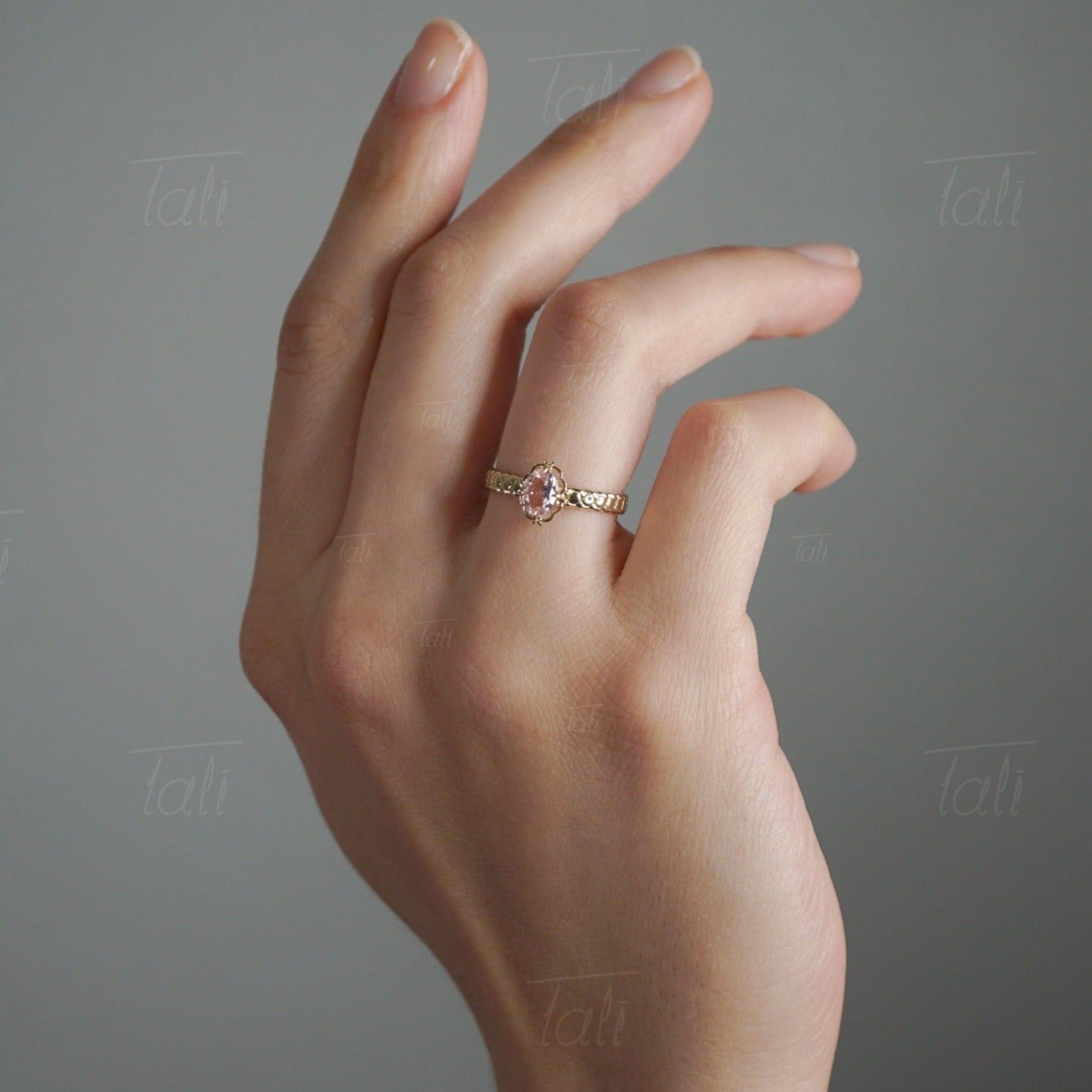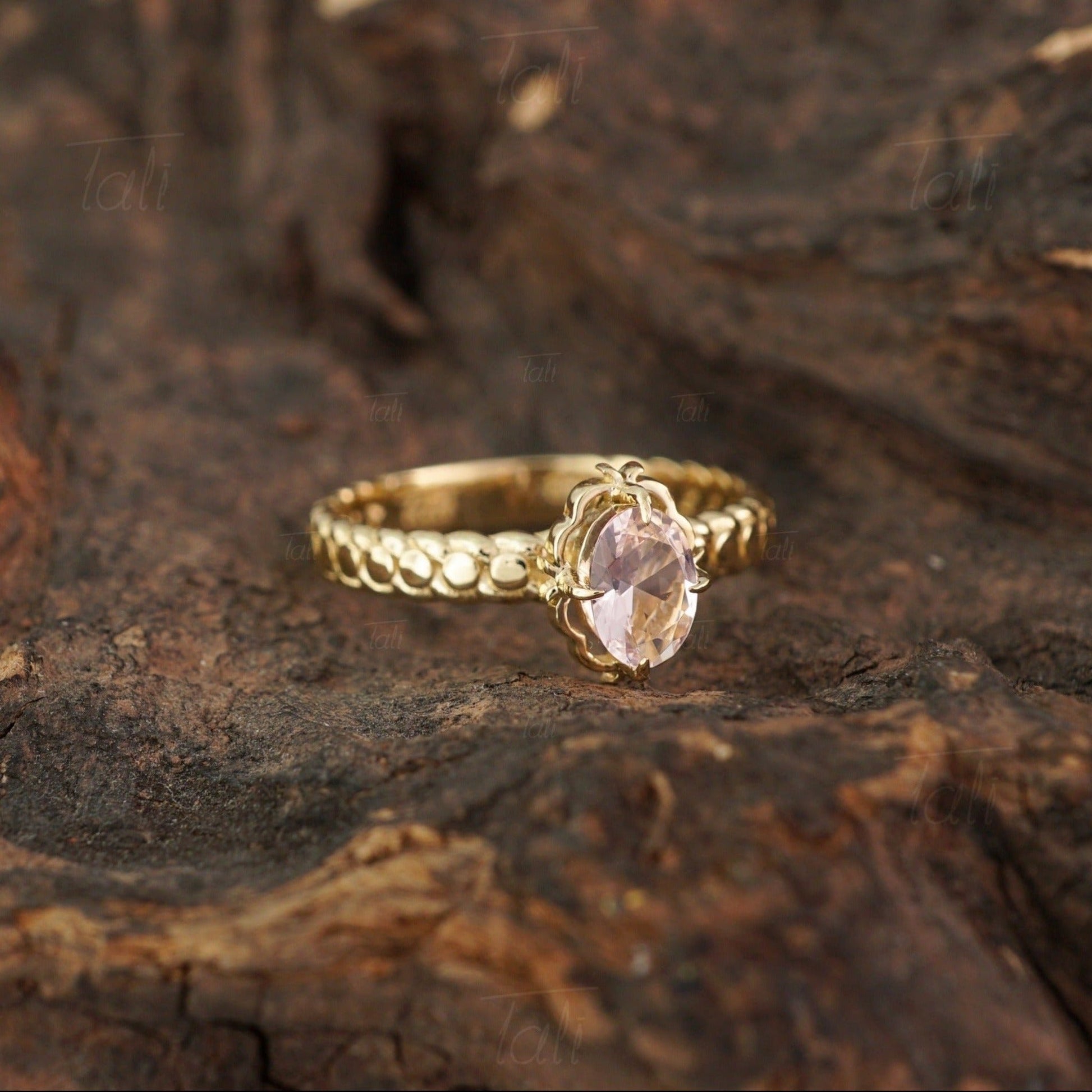 Pembe Morganit Vintage Tektaş Altın Yüzük