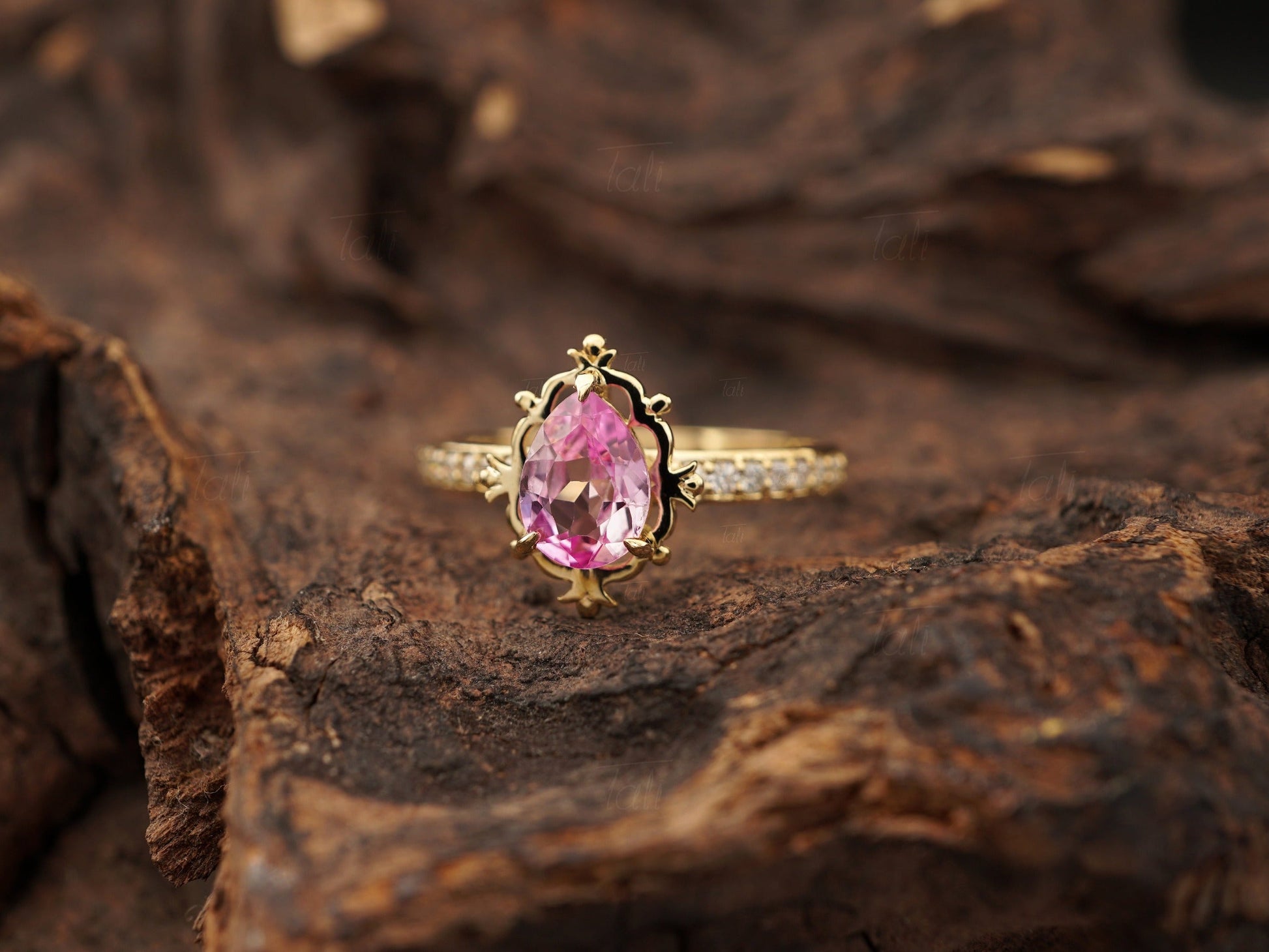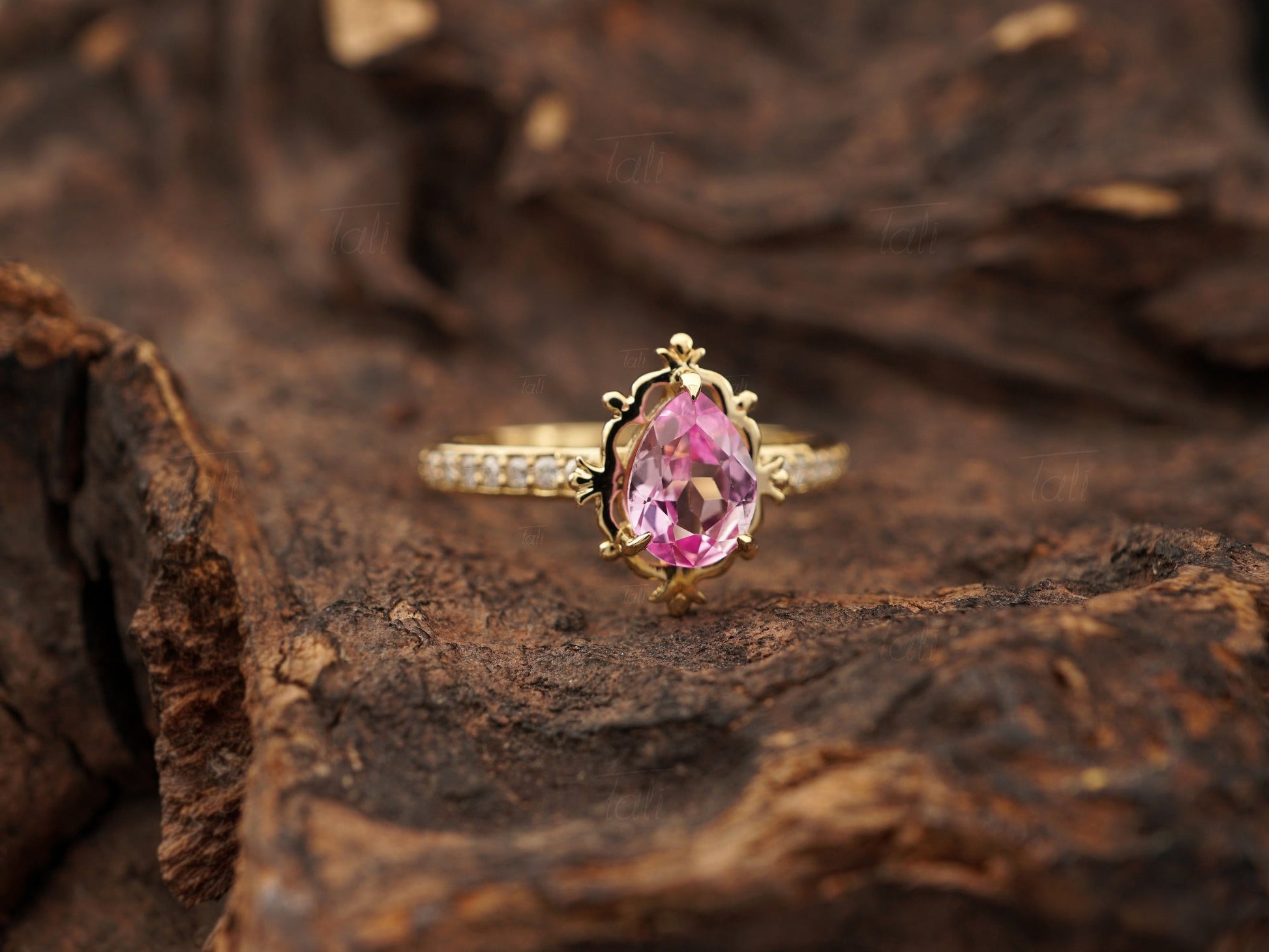 Pera Vintage Pembe Safir Pırlanta Altın Yüzük
