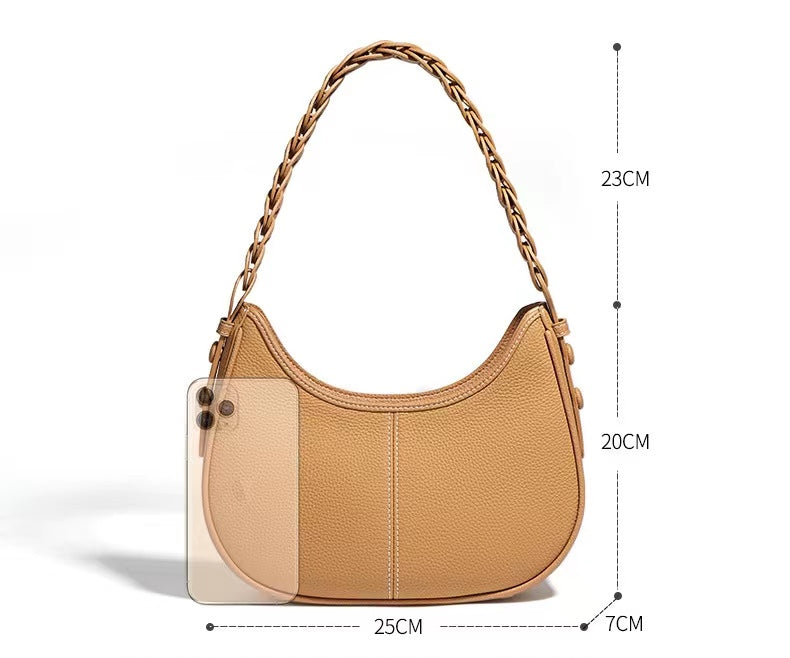 Sofistike First Layer Cowhide Rylee Omuz/El Çantası, en yüksek kaliteli gerçek deriden üretilmiştir ve uzun ömürlü dayanıklılık ile zamansız bir görünüm sunar. Ayarlanabilir omuz/kol askıları, maksimum konfor ve kullanım kolaylığı sağlar, bu da onu günlük kullanım için mükemmel bir seçenek haline getirir.
