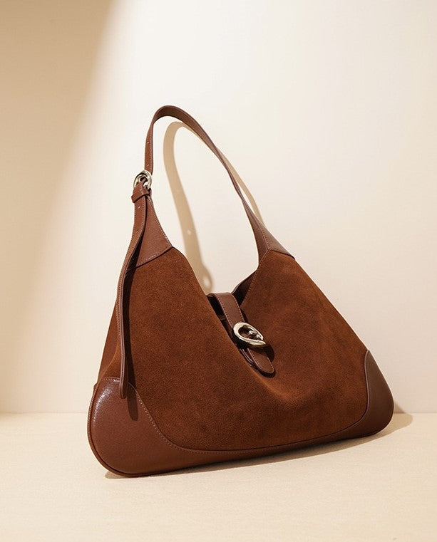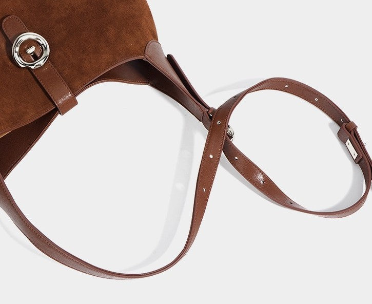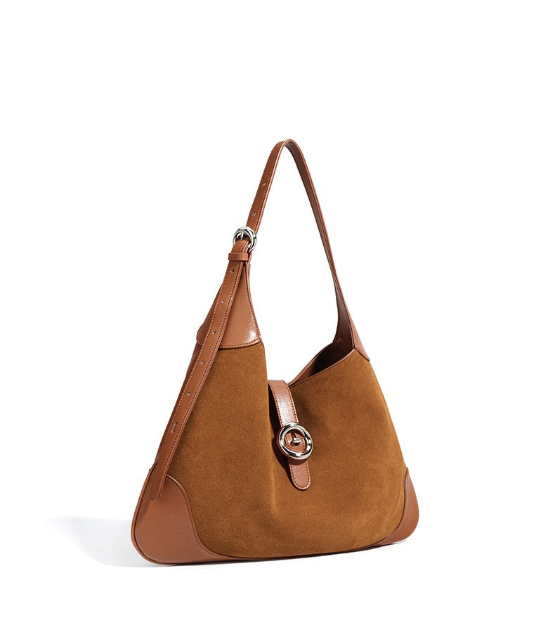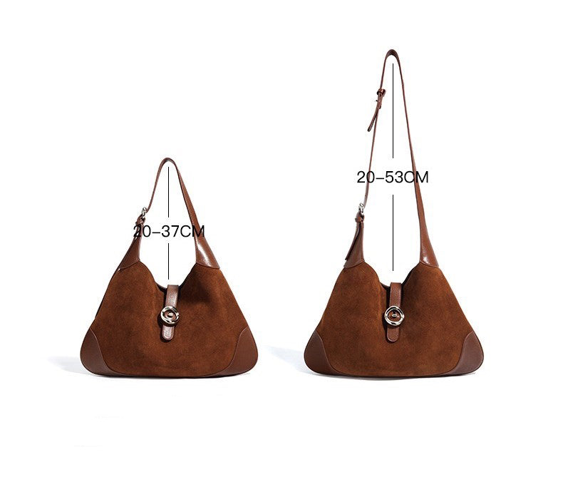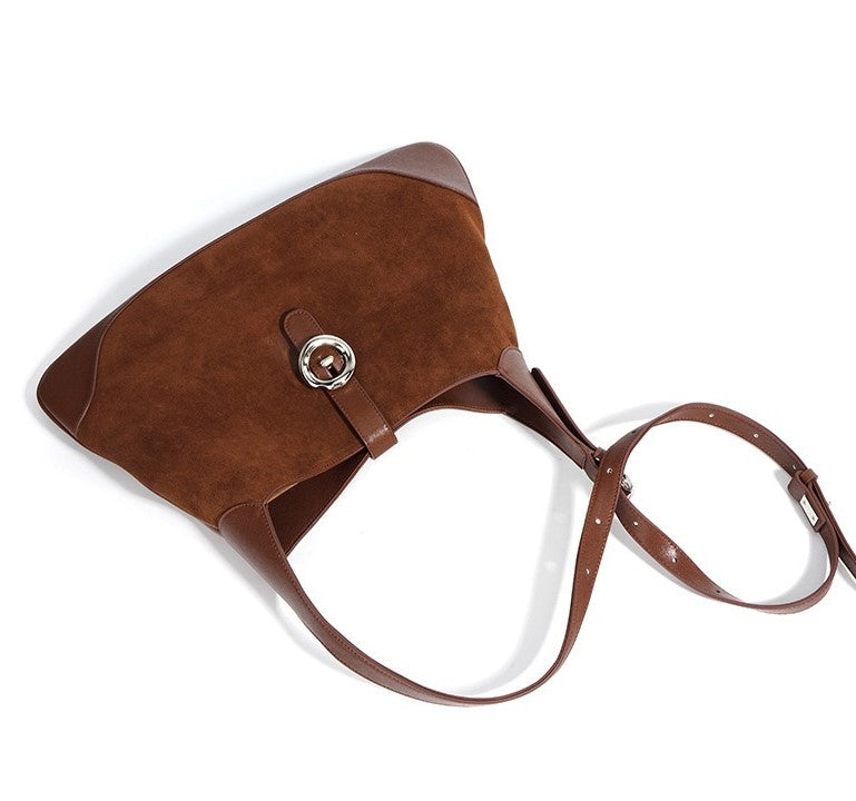 A luxurious addition to your wardrobe, our Suede Shoulder Bag in black exudes elegance and sophistication. Made from soft suede, its stunning caramel color adds a touch of warmth to any outfit. With its spacious interior and adjustable strap, it offers both style and practicality for the modern woman.