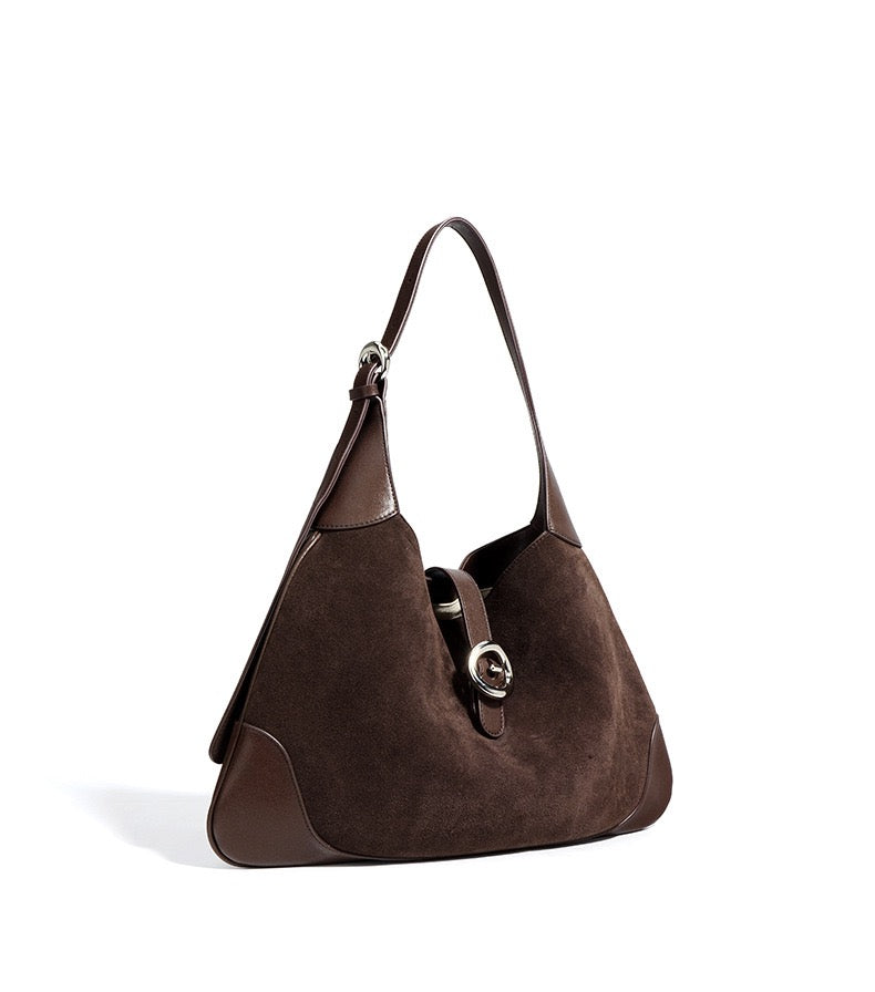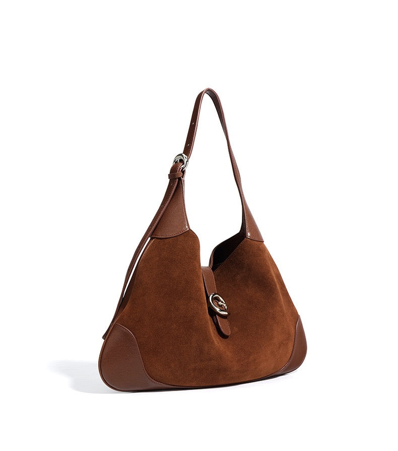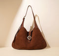 A luxurious addition to your wardrobe, our Suede Shoulder Bag in brown exudes elegance and sophistication. Made from soft suede, its stunning caramel color adds a touch of warmth to any outfit. With its spacious interior and adjustable strap, it offers both style and practicality for the modern woman.