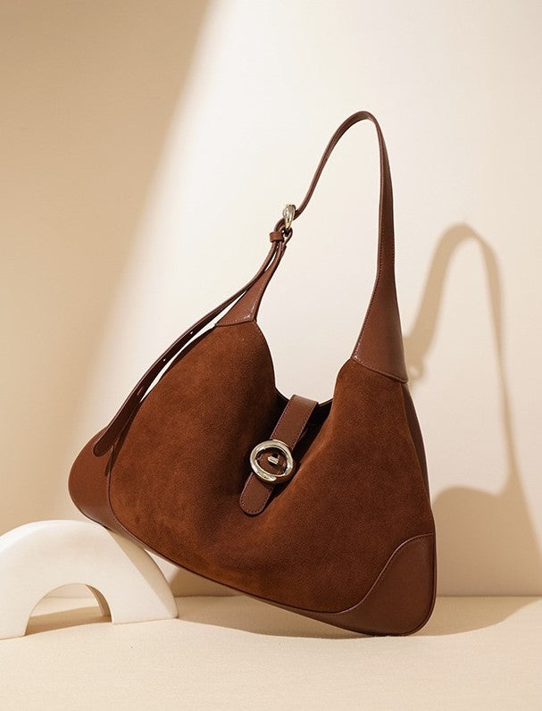 A luxurious addition to your wardrobe, our Suede Shoulder Bag in Caramel exudes elegance and sophistication. Made from soft suede, its stunning caramel color adds a touch of warmth to any outfit. With its spacious interior and adjustable strap, it offers both style and practicality for the modern woman.